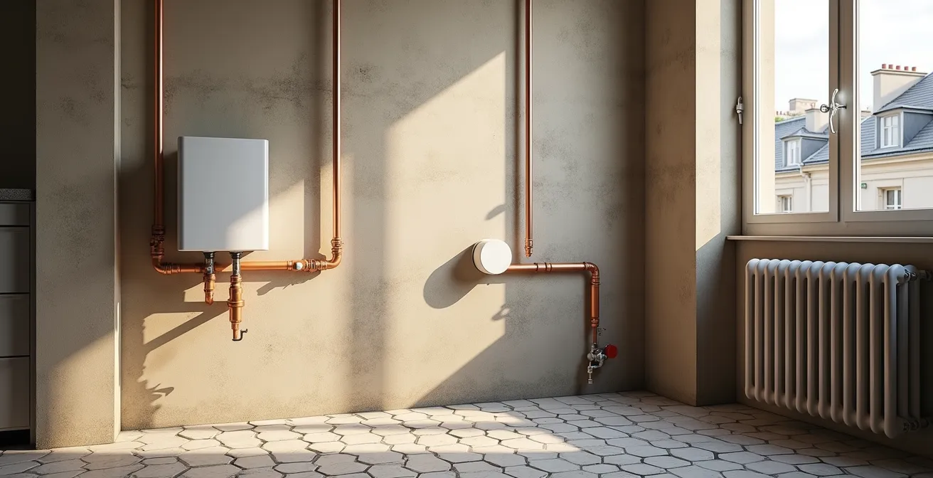 - Identifier vos canalisations : Déterminez l’âge et le matériau de votre plomberie (cuivre, PER, multicouche, acier galvanisé). Pour les immeubles anciens, une consultation du syndic peut être nécessaire.