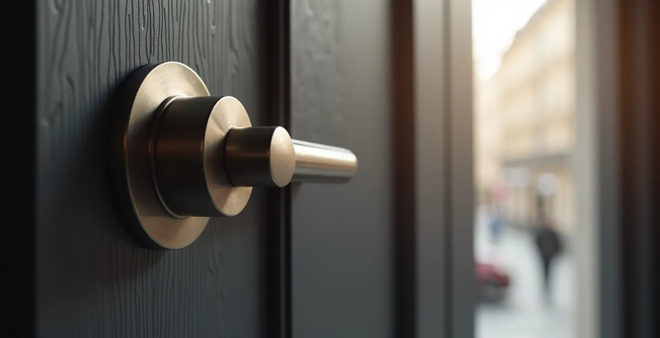 Dans le jargon du dépannage, on fait une distinction cruciale entre une porte « claquée » et une porte « verrouillée ». Une porte simplement claquée n’est retenue que par le pêne demi-tour (la petite pièce biseautée actionnée par la poignée). Une porte verrouillée, en revanche, a engagé les pênes dormants (les gros blocs rectangulaires qui sortent quand vous tournez la clé). Cette différence est fondamentale car elle détermine la méthode d’ouverture.
