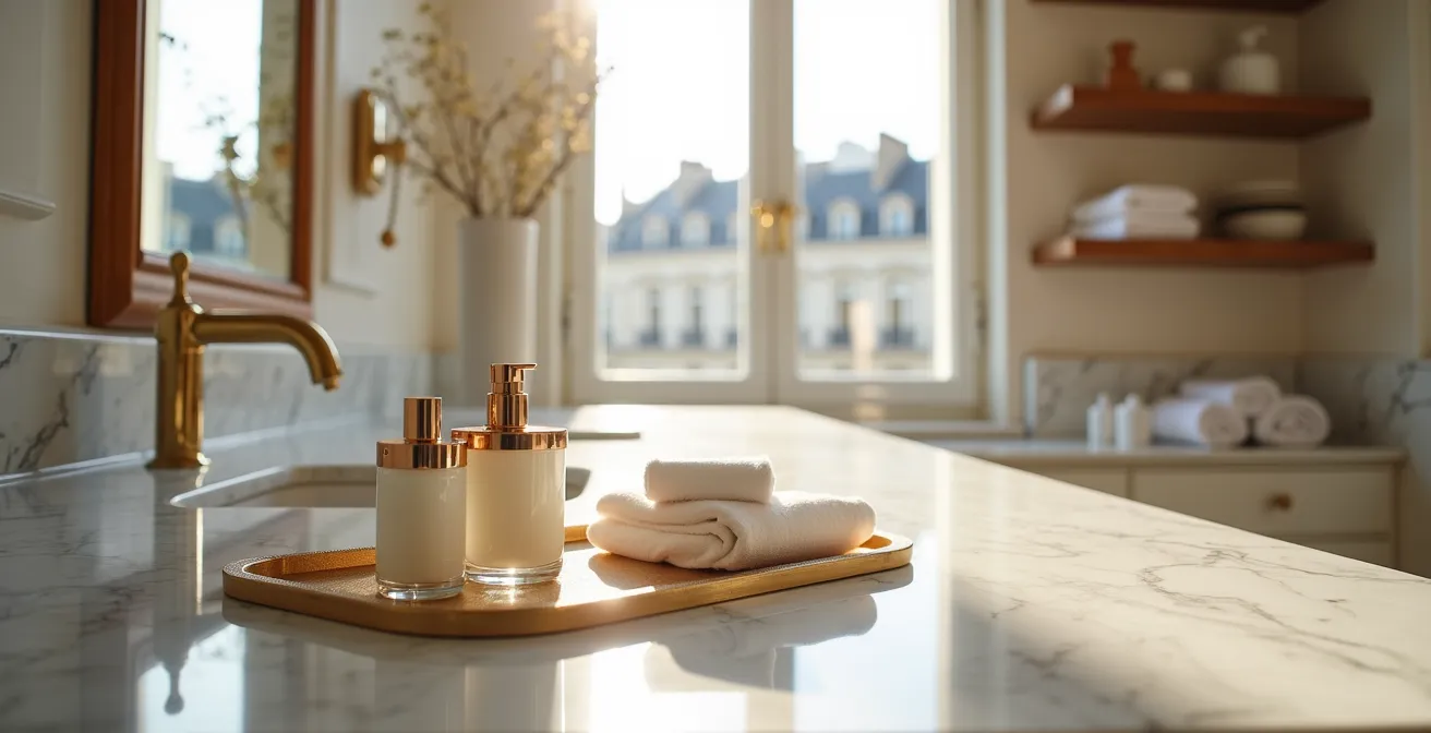 Vous avez investi dans un marbre magnifique et un rituel de nettoyage impeccable. Pourtant, un danger insidieux guette, posé nonchalamment sur votre plan de toilette : vos produits de beauté. Comme le rappelle l’expert Starwax dans son guide, il faut particulièrement faire attention aux « taches de parfum (le plan-vasque en est souvent victime) ». Cette menace est double : elle est à la fois chimique et grasse.